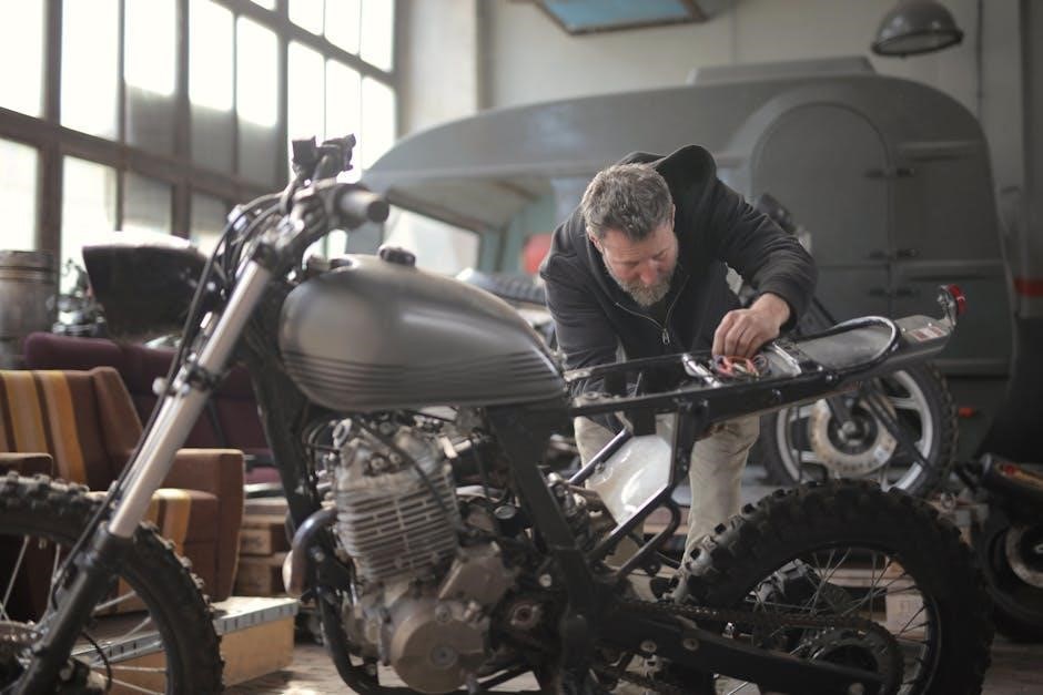 The manual enables riders to tackle various DIY repairs, from basic maintenance to complex overhauls. It provides detailed instructions for oil changes, brake replacements, and suspension adjustments, ensuring safety and precision.