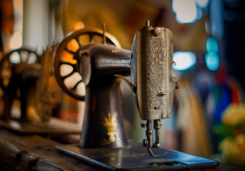 Beyond cleaning, the manual details proper lubrication procedures, specifying which parts require oiling and the recommended oil type. Regular oiling prevents friction and wear, extending the machine’s lifespan and maintaining consistent stitch quality, as outlined in the sewconsult.com manual.